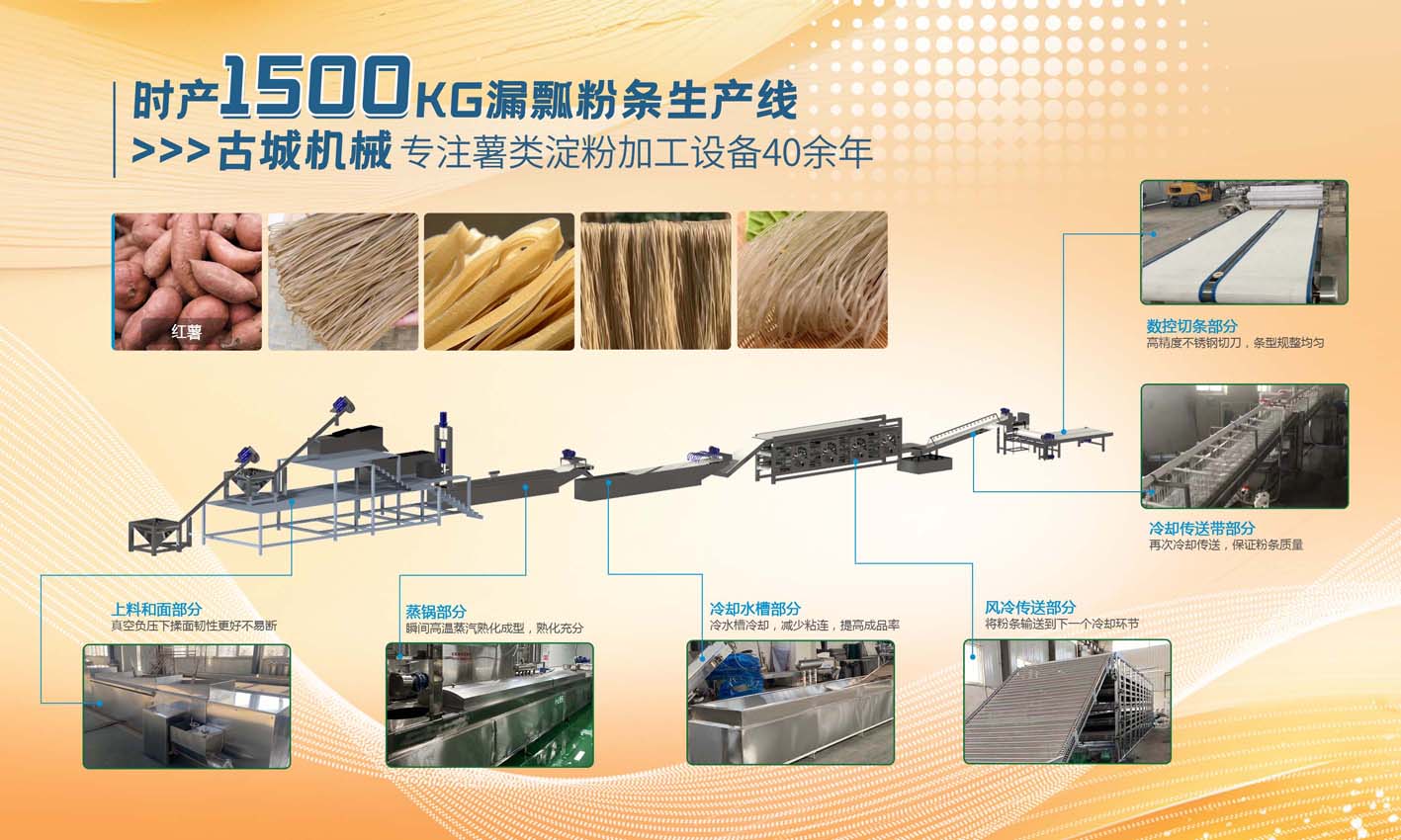 2.用人少、劳动强度小、自动化程度高、从打芡到粉条粉丝全套生产;